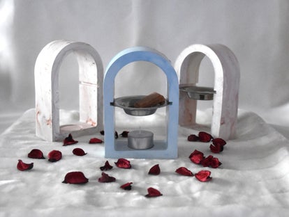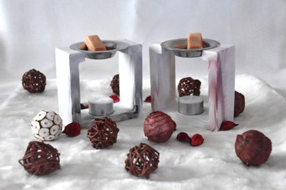 Nos brûleurs sont coulés main, avec de la résine et des pigments de qualité. Le brûleur est fourni avec la bougie chauffe-plat et la coupelle où vous pouvez mettre vos fondants parfumés.