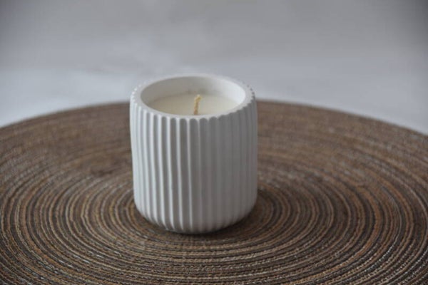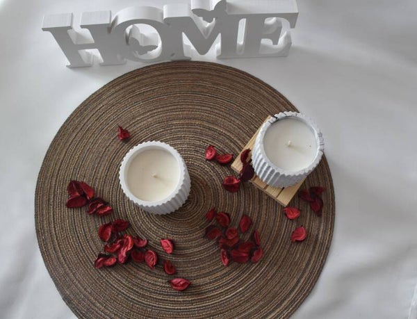 Cire végétale coulée avec des parfums de Grasse. Utilisation de mèches en coton naturelles, tressées et cirées.