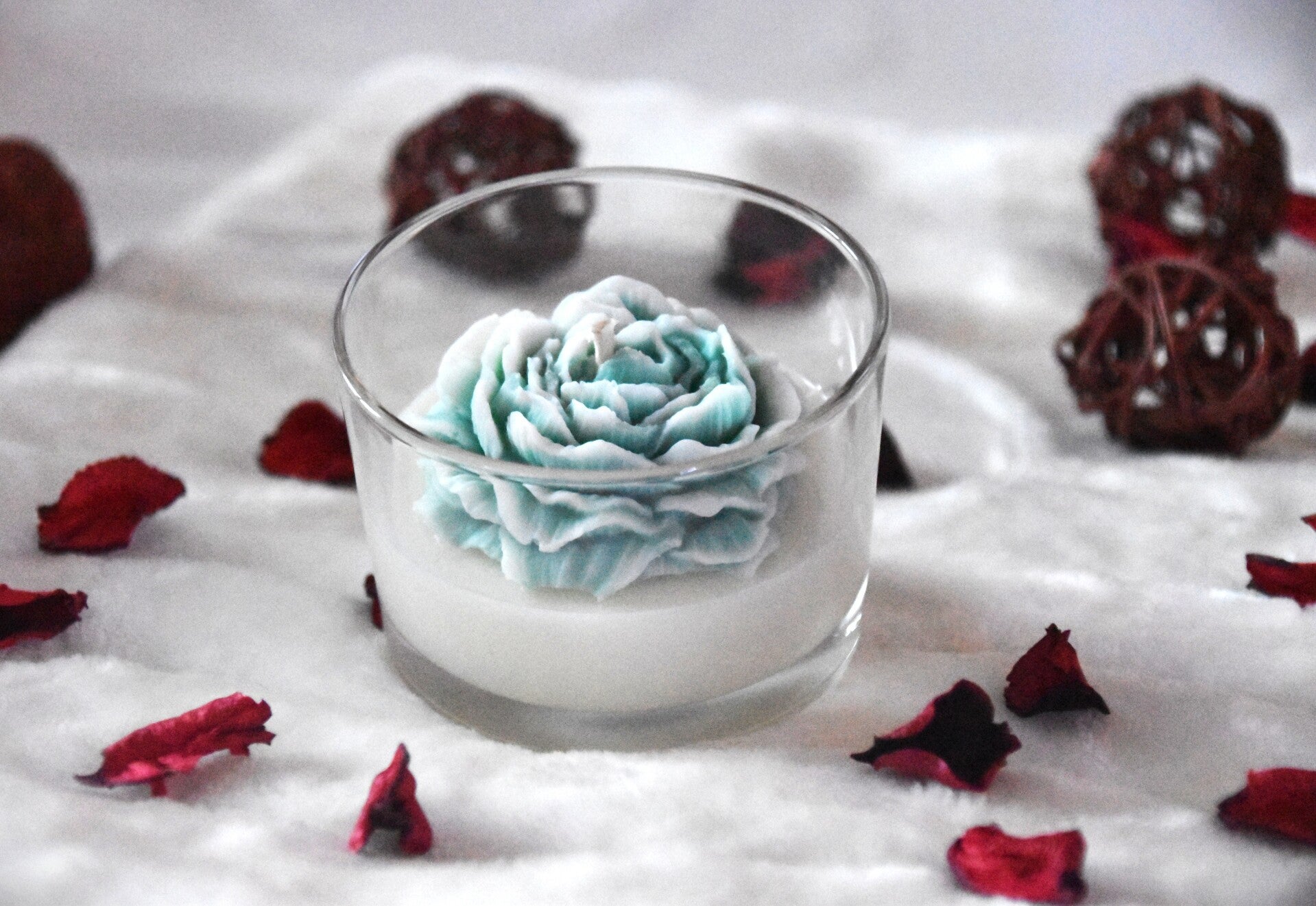 Cire végétale coulée avec des parfums de Grasse. Utilisation de mèches en coton naturelles, tressées et cirées.
